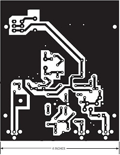 O transformador de RF de 4,5 MHz (T1) poderá ser difícil de encontrar. No projeto original usa-se um da marca OEM Toko e certamente não está disponível através de fontes tradicionais. Apesar de praticamente qualquer transformador 4.5 MHz é similar ao descrito no artigo (condensador interno, secundário) e pode ser usado. A bobina L4 será uma unidade industrial. Pode, no entanto, ser feita em casa usando os parâmetros fornecidos anteriormente. O Transmissor deve ser construído em uma placa de fibra para melhor desempenho. Você pode fazer a placa a partir do PCB fornecido na figura. 2. As peças são instaladas na placa como mostrado na fig. 3. Preste atenção à orientação dos transistores, capacitores eletrolíticos e o diodo. Se o resistor R12 for usado, ele deve ser soldado no lado da solda da placa entre a saída da antena e o terra. Esse resistor deve ser instalado se você pretende usar outra coisa senão o built-in para fornecer correspondência adequada entre a antena e o circuito.
